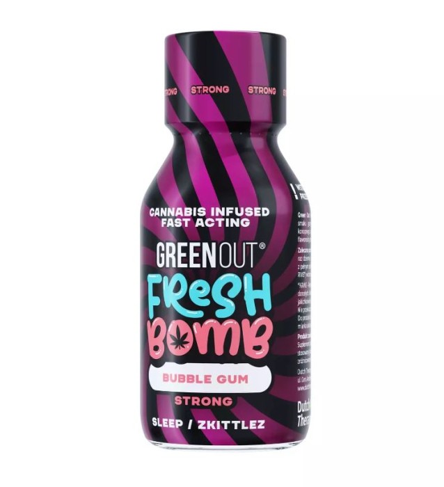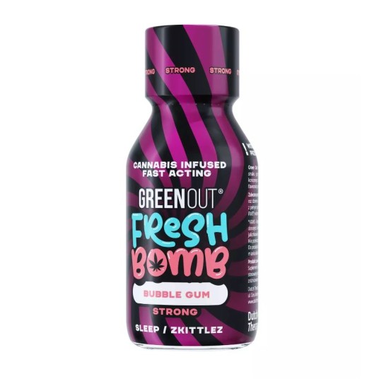 Green Out® Fresh Bomb o smaku Bubble Gum, ten owocowy konopny suplement zawiera naturalne fitokanabinoidy, flawonoidy oraz terpenowy profil odmiany Zkittlez od Jungle Boys, co zapewnia synergiczne działanie. To legalny i naturalny produkt konopny, który może przynieść ulgę w dolegliwościach i wprowadzić Cię w stan relaksu. Produkowany z najwyższej jakości olejku konopnego.